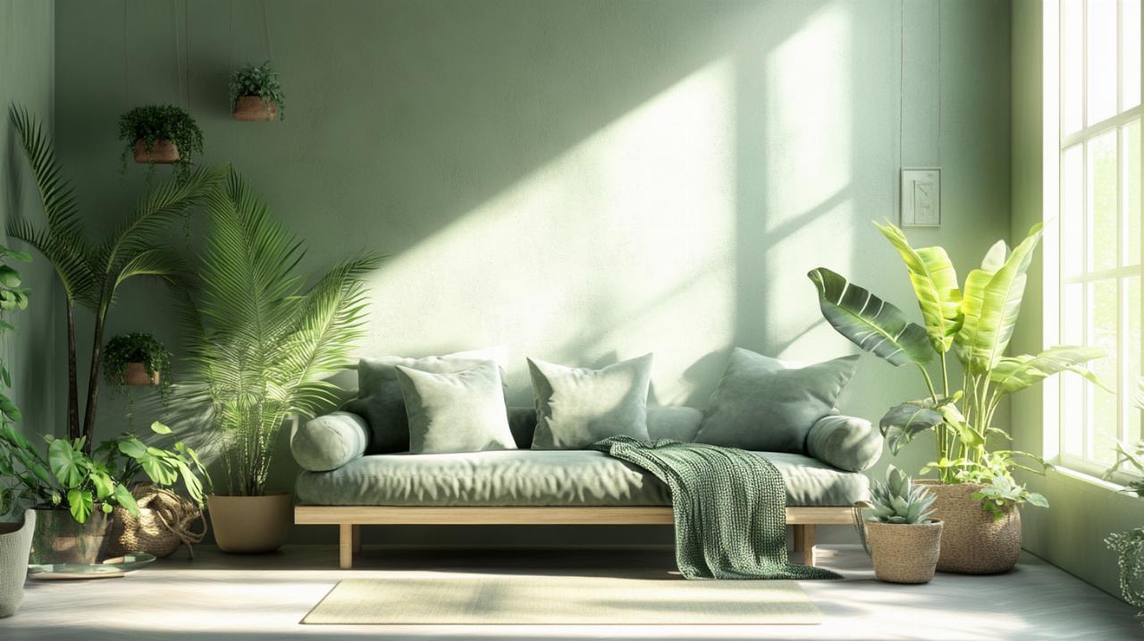 cómo lograr una decoración interior armoniosa con verde salvia y plantas