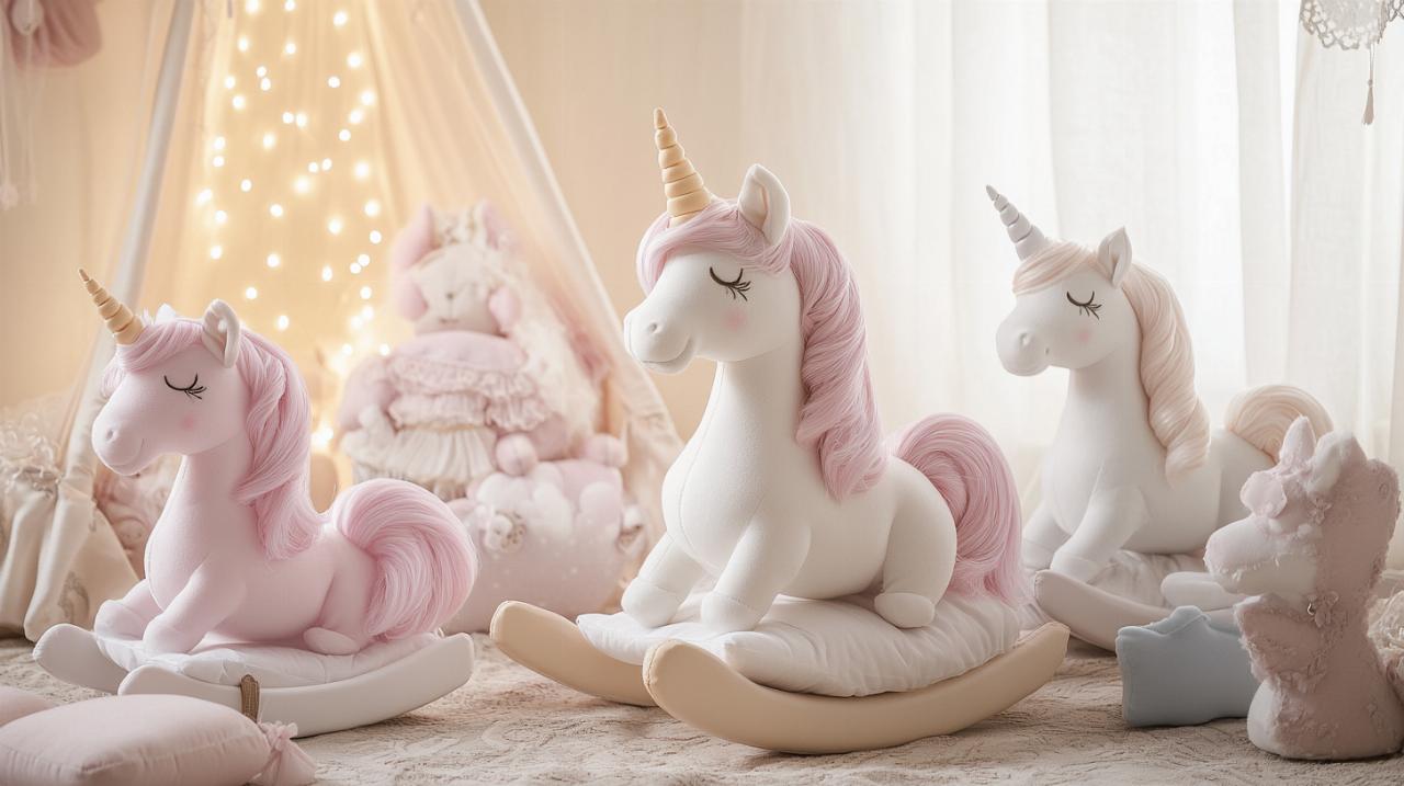 Los balancines de peluche premium destacan por su textura envolvente y su capacidad para generar un ambiente acogedor en cualquier espacio infantil. Estos modelos emplean rellenos hipoalergénicos de última generación que garantizan la ausencia de alérgenos comunes, lo que los convierte en una opción ideal para niños con sensibilidades específicas. La suavidad del tejido exterior, combinada con costuras reforzadas, asegura que el juguete soporte el uso intensivo sin perder su forma original. Algunos ejemplares incorporan detalles bordados en lugar de elementos plásticos, reduciendo así los riesgos asociados a piezas pequeñas. La paleta cromática de estos balancines suele incluir tonos pastel que evocan la fantasía asociada a los caballos unicornio, creando un entorno visualmente atractivo que estimula la creatividad. Marcas reconocidas como Schleich y Breyer, aunque más conocidas por sus figuras realistas, han inspirado a fabricantes especializados en peluches a desarrollar líneas que combinan la calidad de construcción con el encanto de los diseños suaves, ofreciendo una relación calidad-precio altamente competitiva en el segmento premium.